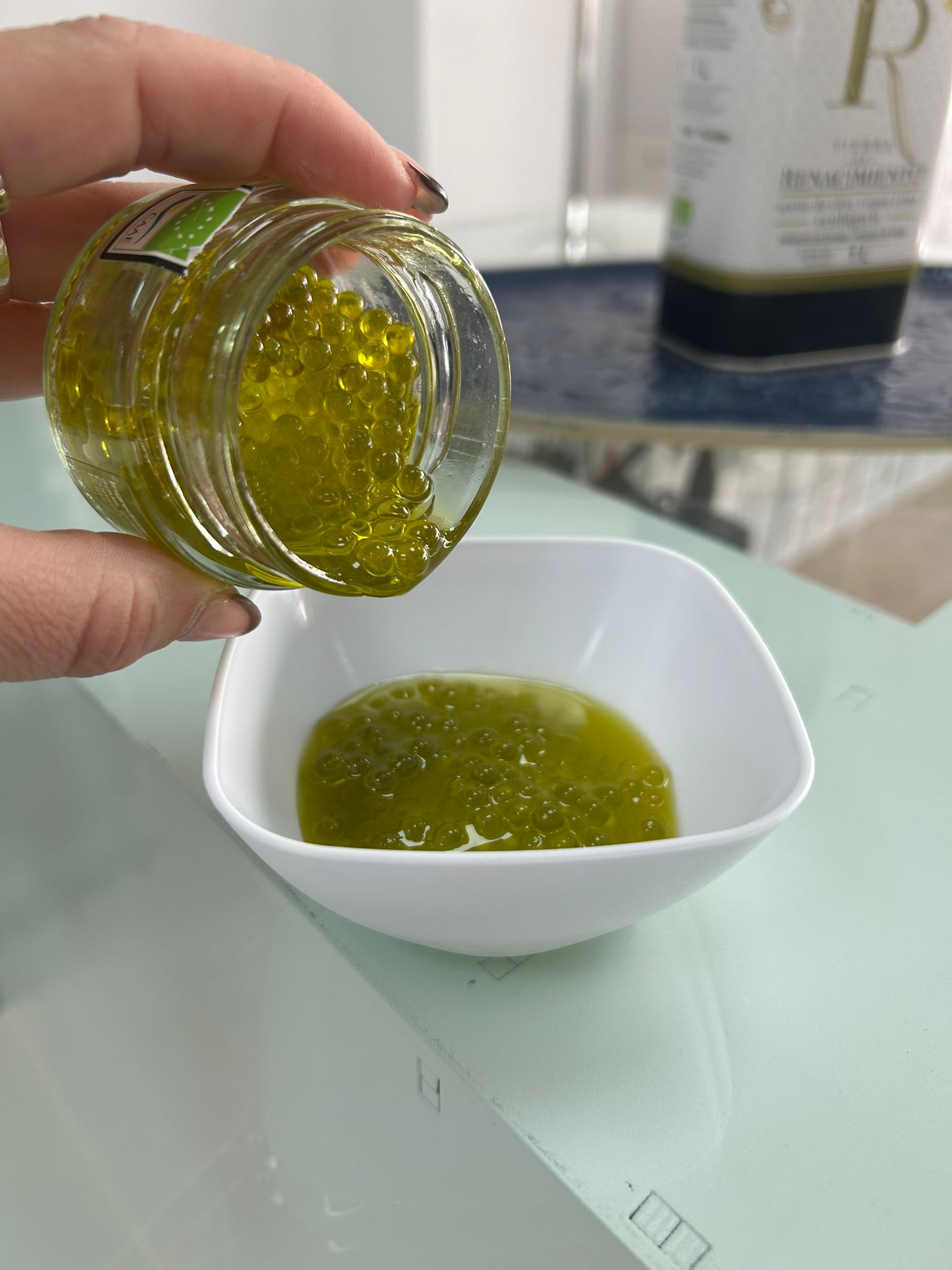 Las esferificaciones de Tierra de Renacimiento son una forma distinta de entender el aceite de oliva.