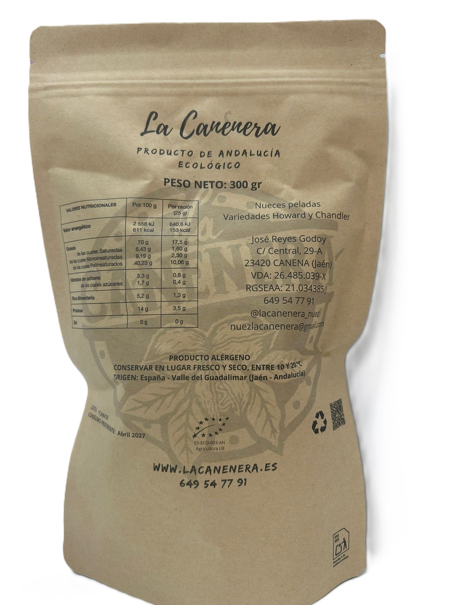 Inicio » Tienda » Nuez Ecológica pelada LA CANENERA – Bolsa 300g